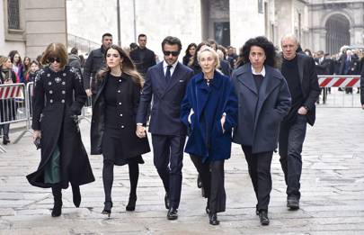 Rarely has there been such a gathering of the leading players in the fashion world of the past 30 years. Franca was an editor whose Vogue was known for its adventurous fashion photography and many of those who had grown their careers in its pages joined the enormous crowd filing into the great cathedral – Mario Sorrenti, Peter Lindbergh, Tim Walker, Paolo Roversi, Mario Testino to name a few. They were joined by a roll-call of the most famous designers in the fashion universe. Stella McCartney arrived with Kate Moss, both beautifully veiled, Phoebe Philo, Victoria Beckham, Burberry’s Christopher Bailey and Alexander McQueen’s Sarah Burton flew the British flag. A navy pea-coated Giorgio Armani and a tiny Donatella Versace led the many Italians who included Maria Grazia Chiuri, now at Dior, and Valentino Garavani with his partner Giancarlo Giammetti.