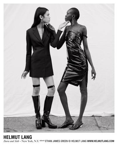 “Ethan has a group around him that he’s curated in a beautiful way. There’s a real mix of cultural thinkers and writers, then also cult Helmut muses like Alek Wek. I liked the idea of pairing her with someone like the model Dara who is much younger, and then putting them alongside Traci Lords. A lot of people won’t remember that Traci was on the cover of Details Magazine in May 1995 wearing custom pieces made for her by Helmut. I loved the idea of Traci being an unexpected Helmut Lang muse and inviting her back into the brand.”