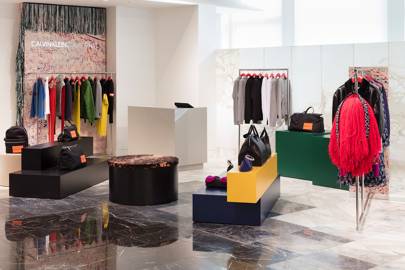 The latest iteration has now come to the UK with a corner of Selfridges, made-over for Calvin Klein by Ruby. The biggest in store drop of Simons' debut Calvin collection is displayed on coloured plinths and canvas backdrops created in Ruby’s four acre, LA studio complex alongside multi-million dollar paintings, totemic poured sculpture and fabric collages for which he has become famous. Art world purists may disapprove, but Ruby sees all his fashion collaborations as an extension of his artistic practice.
