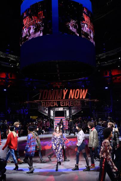 As soon as Hilfiger and Hadid took their bows, The Roundhouse became a scene from Cirque de Soleil, with acrobats descending from the ceiling - all decked out in Hilfiger athleisurewear, of course - as technicians set up the stage in the background for a set by The Chainsmokers, which followed.